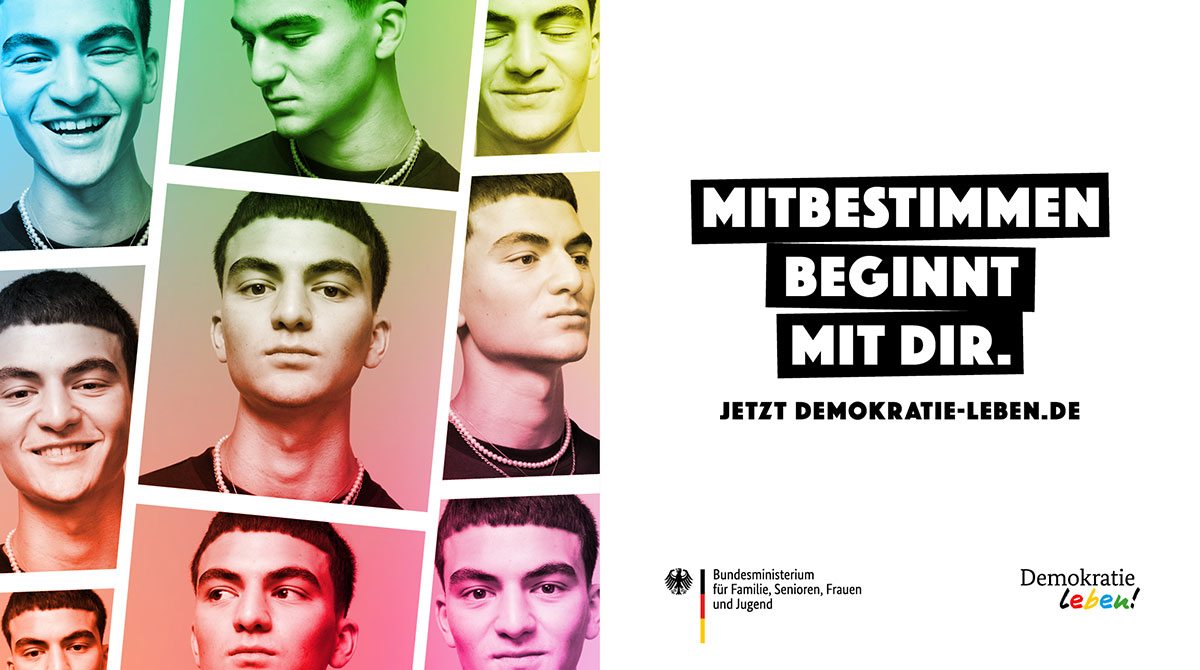 Coronavirus-Pandemie, Krieg gegen die Ukraine, Energiekrise – wir leben in herausfordernden Zeiten. Gerade jetzt müssen unsere demokratischen Werte besonders geschützt werden und zwar von möglichst vielen. Denn Demokratie ist etwas, das wir nur gemeinsam leben, gestalten, pflegen, weiterentwickeln und schützen können. Mit der Kampagne „Es beginnt mit dir.“ würdigt das Bundesministerium für Familie, Senioren, Frauen und Jugend das Engagement all derer, die sich für unsere Demokratie einsetzen. Zusammen mit Ihnen wollen wir im Rahmen der Kampagne wieder Menschen in ganz Deutschland dazu anregen, sich für die Demokratie einzusetzen: auf der Straße, vor Ort, im Job, im Netz oder im persönlichen Umfeld.